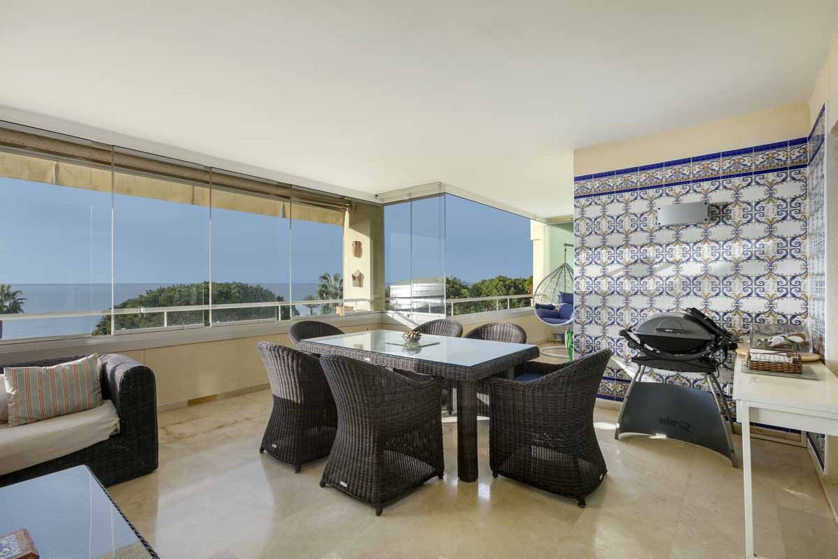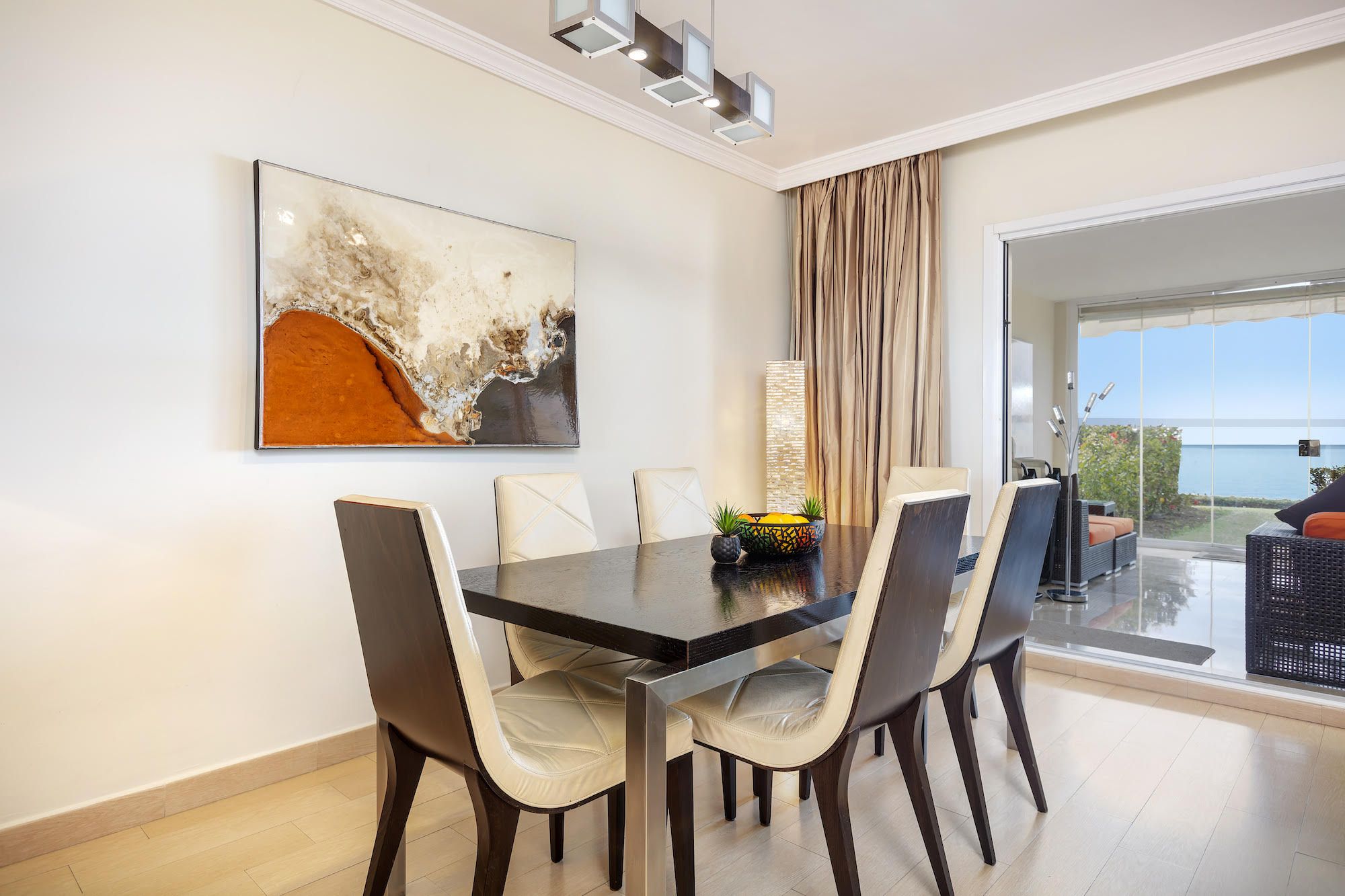 Lovely, second floor 3 bed 2 bath apartment with panoramic, frontal, uninterrupted sea views. Spacious terraces for alfresco dining in this luxury development. Have a glass of wine here and enjoy the atmosphere with your friends and family.